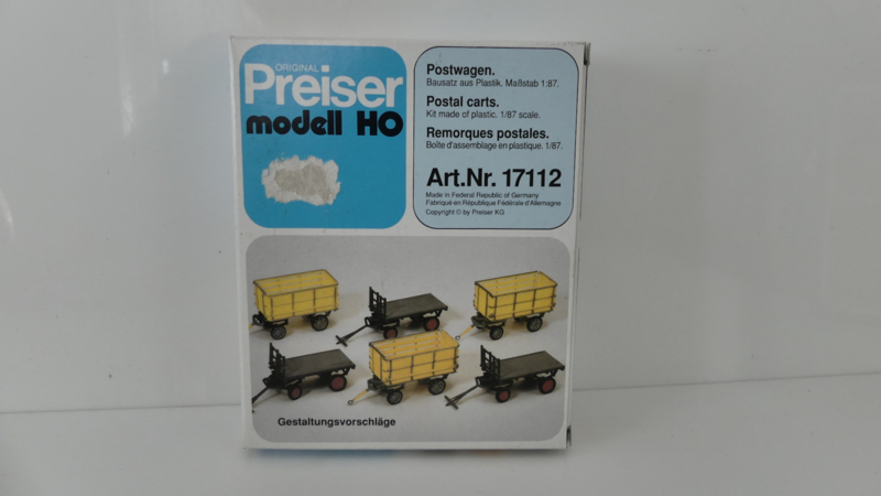 Preiser H0 bouwdoos decoratie set diverse postwagens - bagagewagens voor op perron ovp 17112