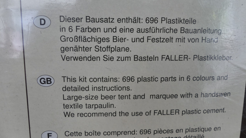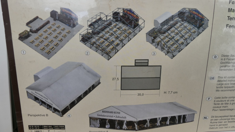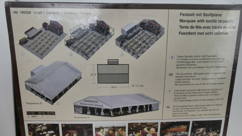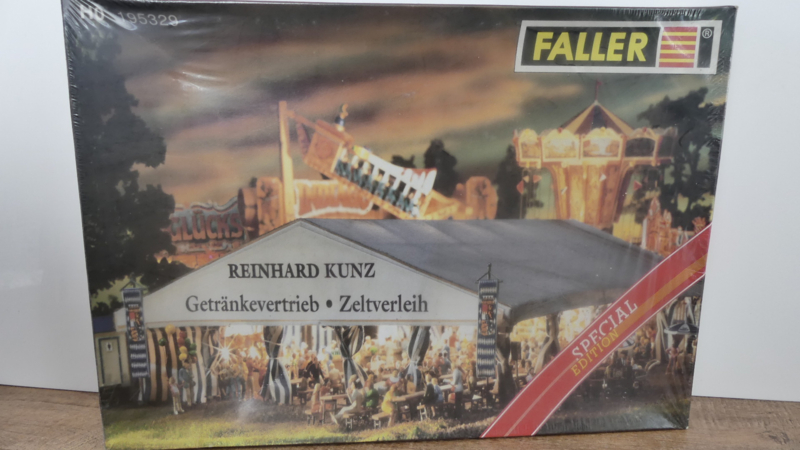 Faller H0 1:87 bouwdoos feesttent Reinhard Kunz Getränkvertrieb Zeitverleih met echt zeildoek ovp 195329